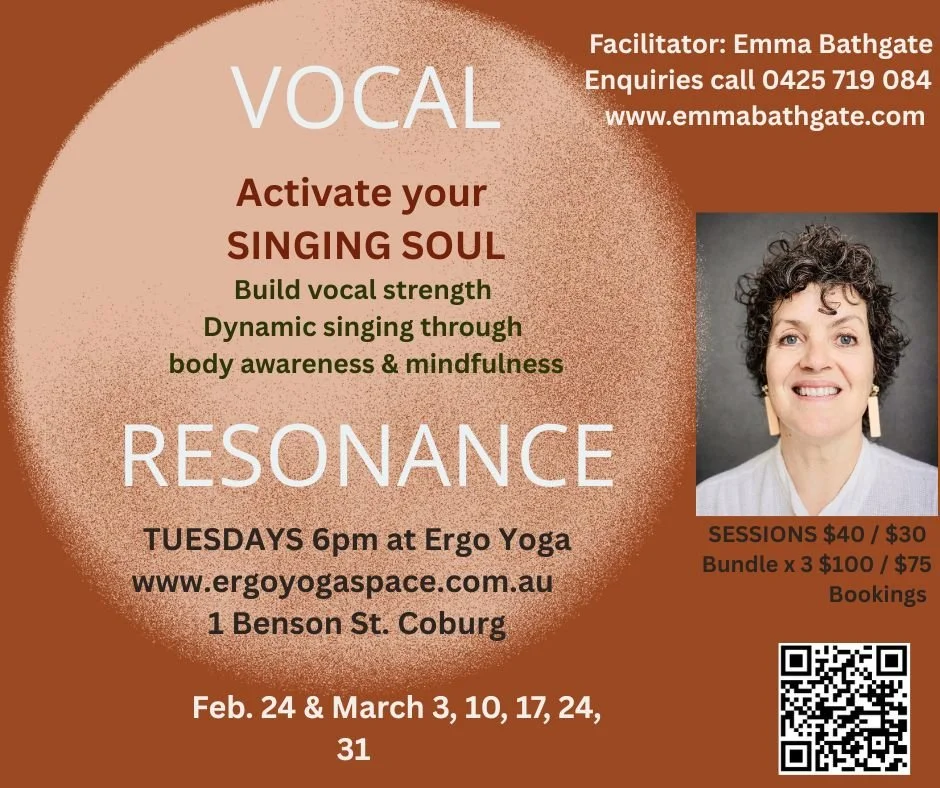 Through her experience and 27 year journey as a trained singer and meditator - Emma Bathgate enables others to connect & fully engage with their own vocal journeys.